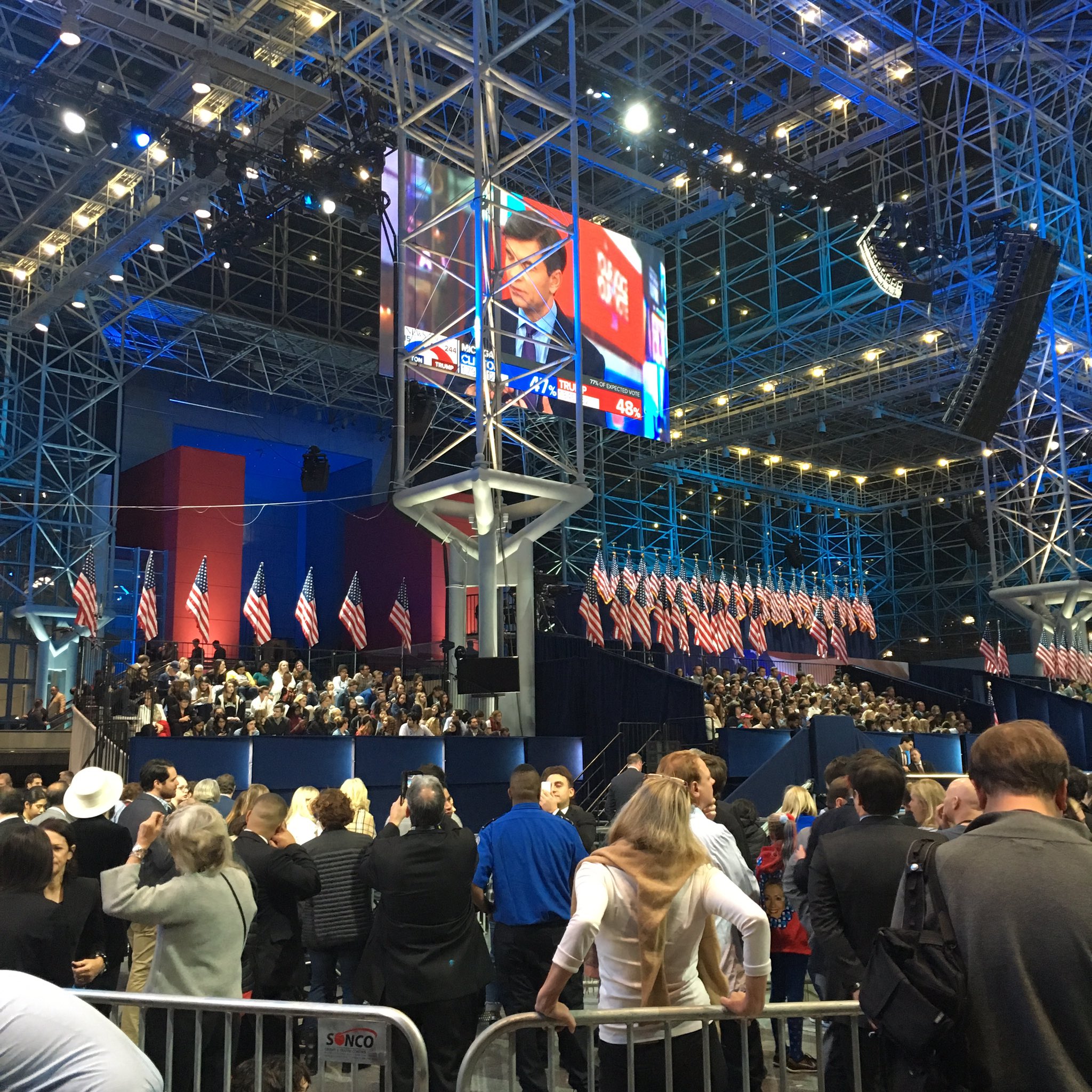 The crowd at Hillary Clinton's campaign night event has thinned and the mood is somber at almost 1 a.m. It is now 7am in #Nigeria. She ran a good race but not her time. hat e-mail scandal boils down to the Benghazi incident. Crowd is thinning #Clinton HQ at Javits. Some staffers tearing up. No music playing. Anxious/somber mood to say least. @HillaryClinton still has to concede
